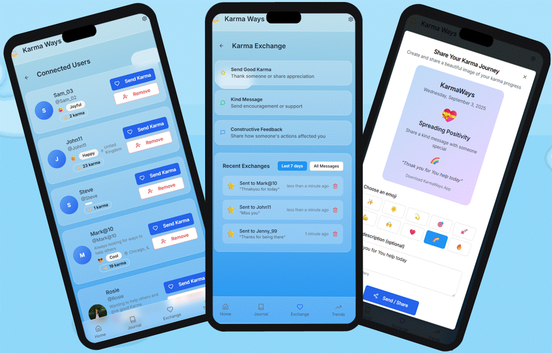 Send Karma to your connected friends. Share your mood or daily Karma with them or on social media!